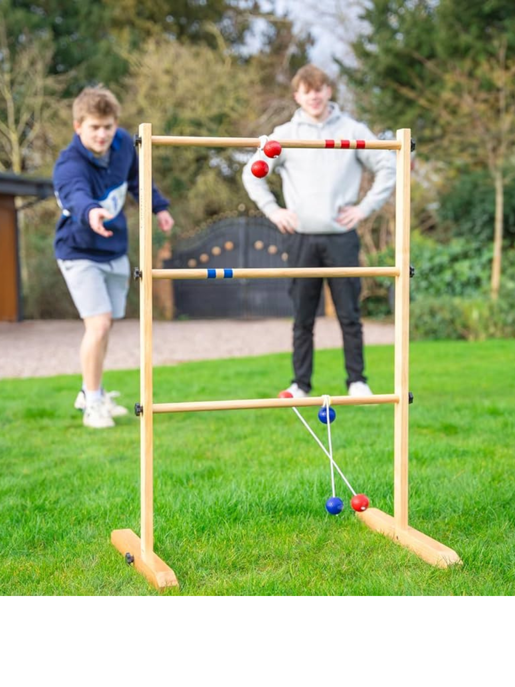 Includes one complete Ladder Toss set with bolas.